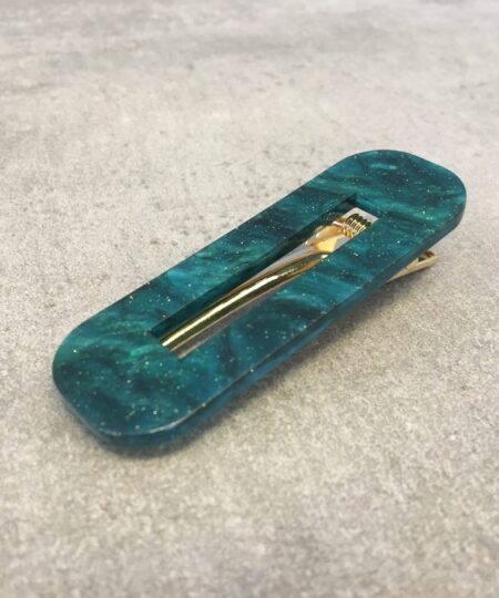 Ella – Firkantet Hårklemme i grøn med glimmer