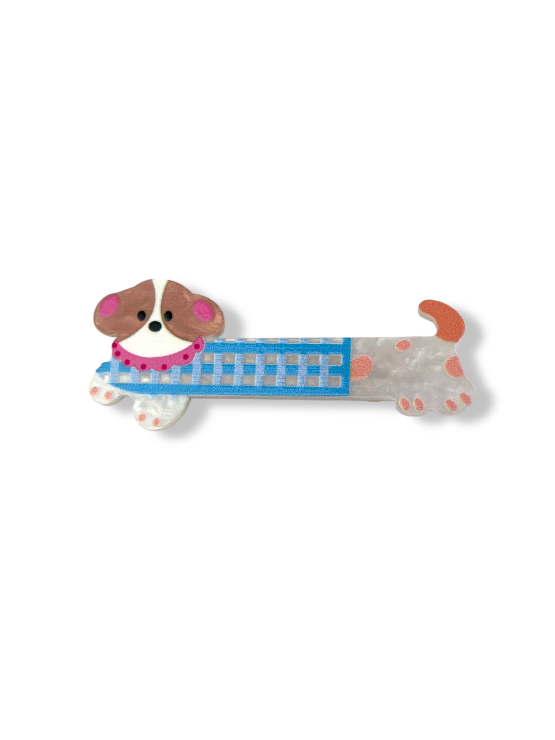 Med sit søde design og sin ternede trøje er denne hårklemme formet som Charlie hund et unikt og dekorativt håraccessory.