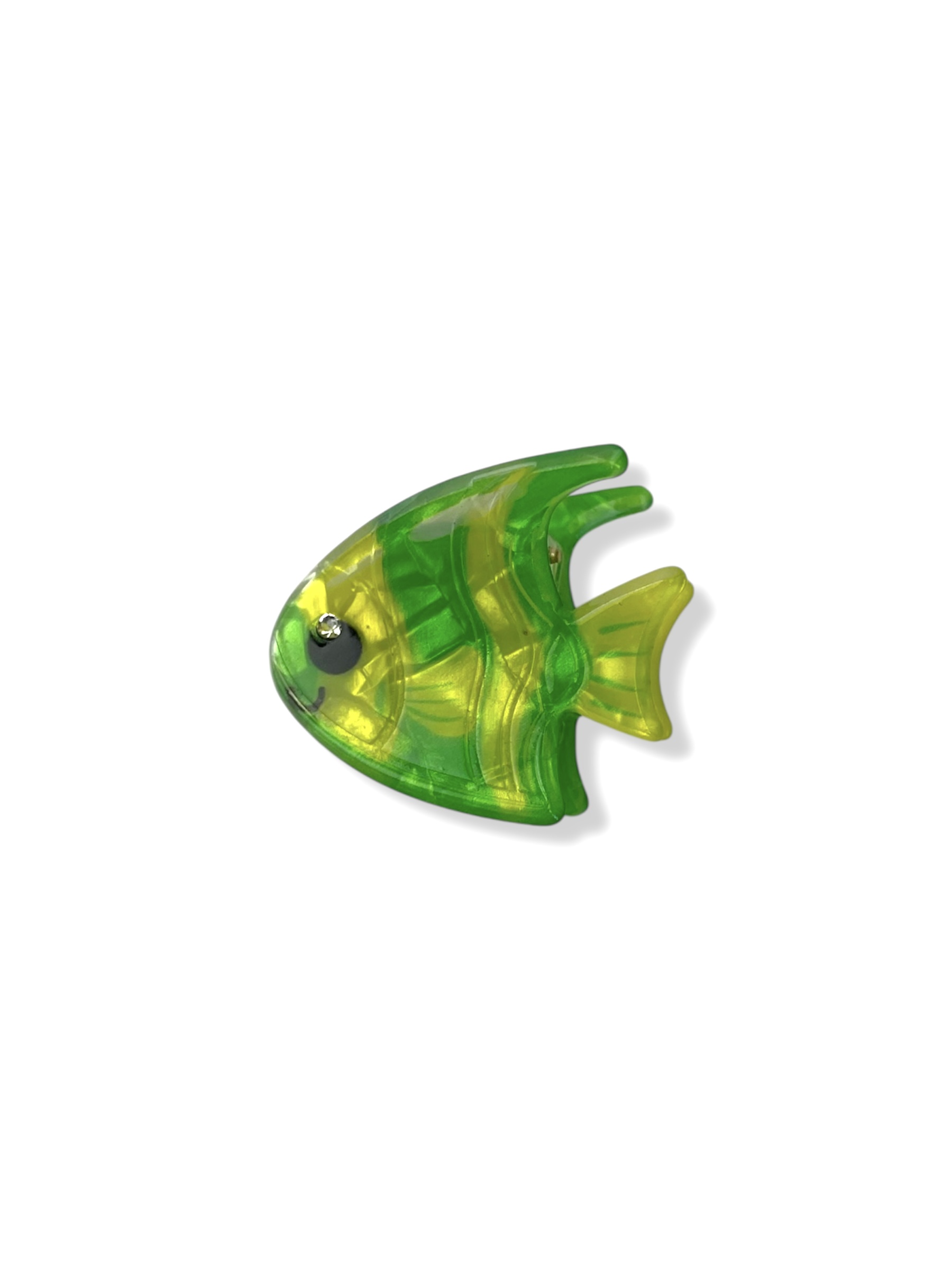 Denne mini hårklemme formet som en angelfisk er et farverigt og dekorativt håraccessory. Den giver din frisure et friskt og sommerligt udtryk. Fiskens klare farver og enkle form gør hårklemmen både iøjnefaldende og stilfuld.