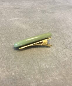 Elegante hårklemme i støvet grøn, måler 3,5 cm. Har en klemme på bagsiden i metal