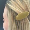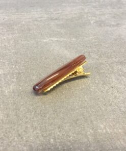 Elegante hårklemme i brun, måler 3,5 cm. Har en klemme på bagsiden i metal