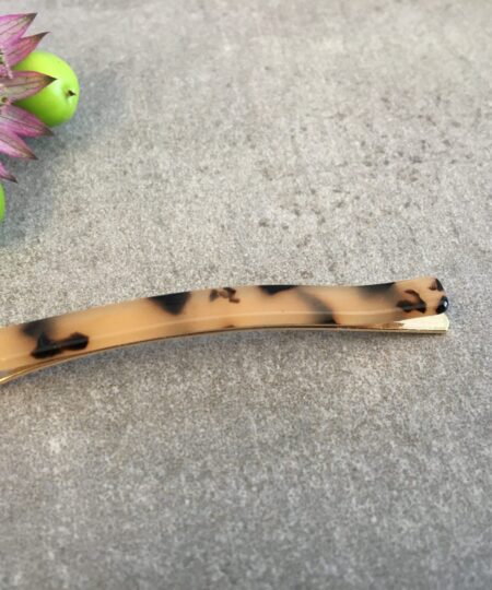 Hårnål som måler 6,5 cm, med kraftigt metal og acetat.