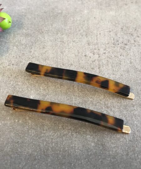 Hårnål som måler 6,5 cm, med kraftigt metal og acetat.