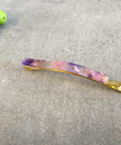 Hårnål som måler 6,5 cm, med kraftigt metal og acetat.