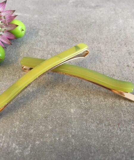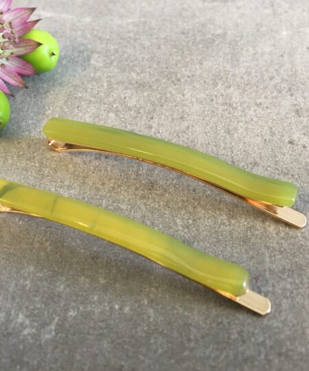 Hårnål som måler 6,5 cm, med kraftigt metal og acetat.