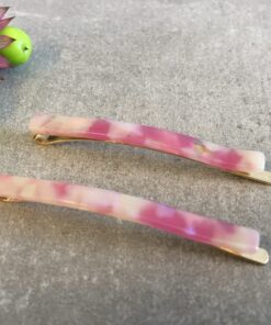 Hårnål som måler 6,5 cm, med kraftigt metal og acetat.