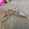 Hårnål som måler 6,5 cm, med kraftigt metal og acetat.
