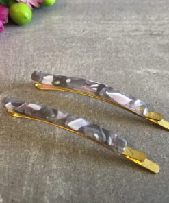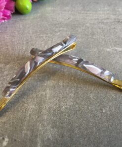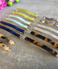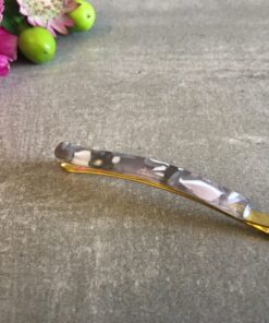 Hårnål som måler 6,5 cm, med kraftigt metal og acetat.