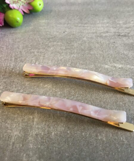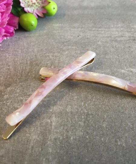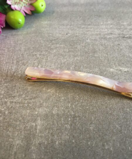 Hårnål som måler 6,5 cm, med kraftigt metal og acetat.