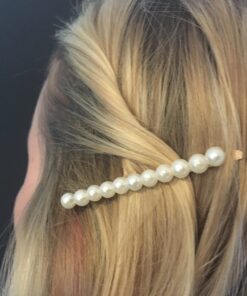 Hårnål er lavet i kraftig metal, dekoreret med hvide perler. måler 7 cm.