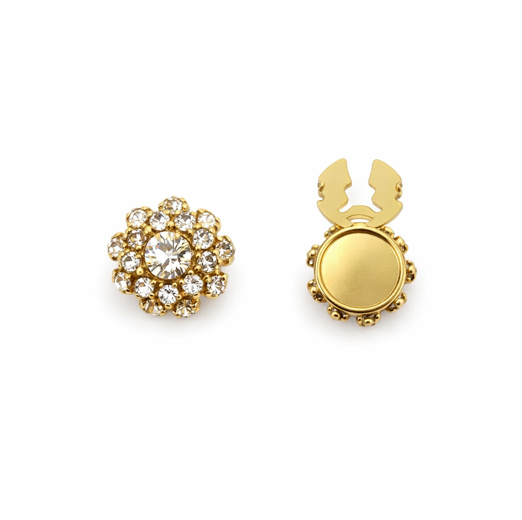 Vores knappeskjuler er designet til dig, der ønsker at opgradere dit outfit på en enkel og stilfuld måde. Med dette elegante button cover kan du forvandle en almindelig skjorte eller bluse til et personligt og eksklusivt look på få sekunder. Knappeskjuleren klikkes nemt fast over din eksisterende knap og kræver hverken syning eller permanente ændringer af tøjet.