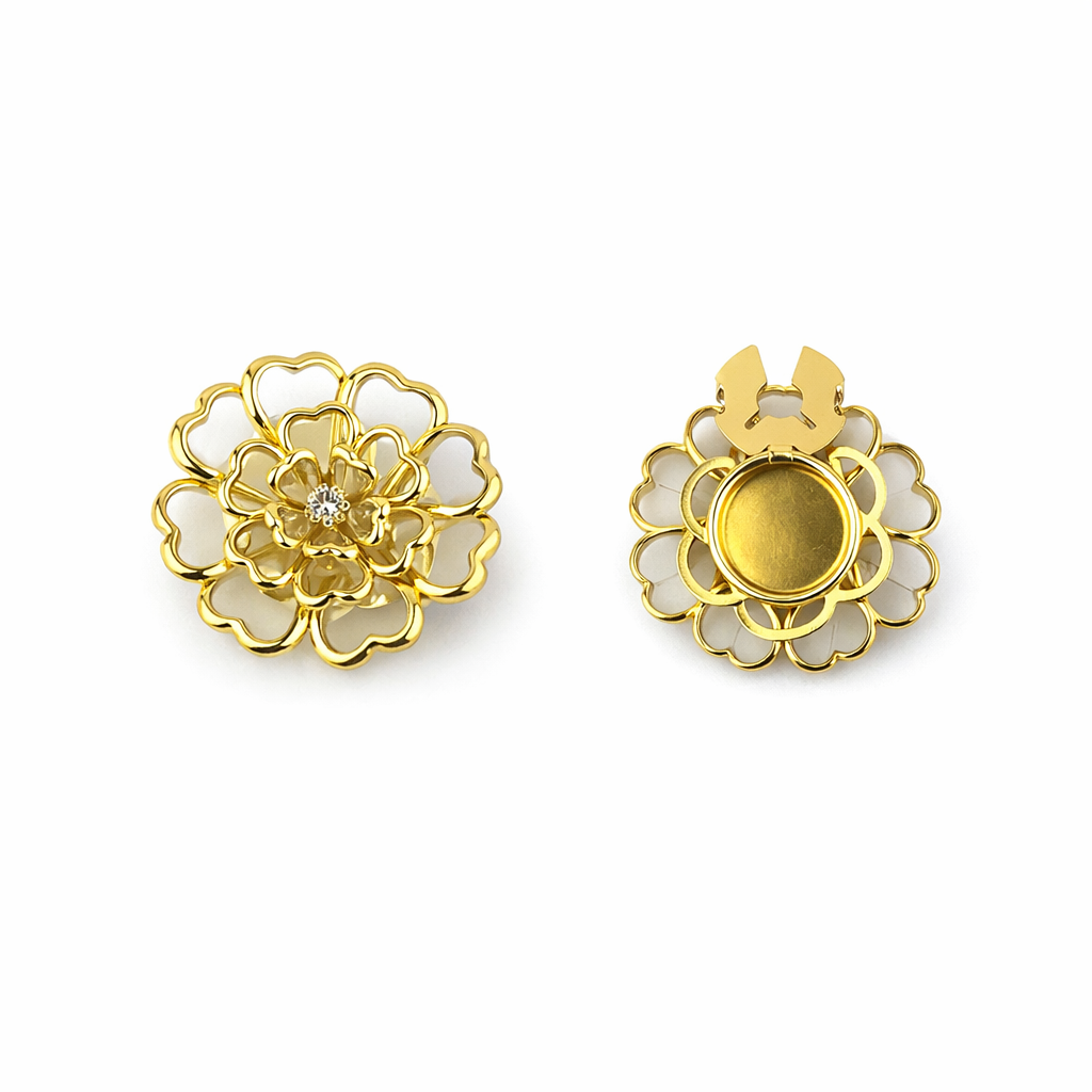 Vores knappeskjuler er designet til dig, der ønsker at opgradere dit outfit på en enkel og stilfuld måde. Med dette elegante button cover kan du forvandle en almindelig skjorte eller bluse til et personligt og eksklusivt look på få sekunder. Knappeskjuleren klikkes nemt fast over din eksisterende knap og kræver hverken syning eller permanente ændringer af tøjet.