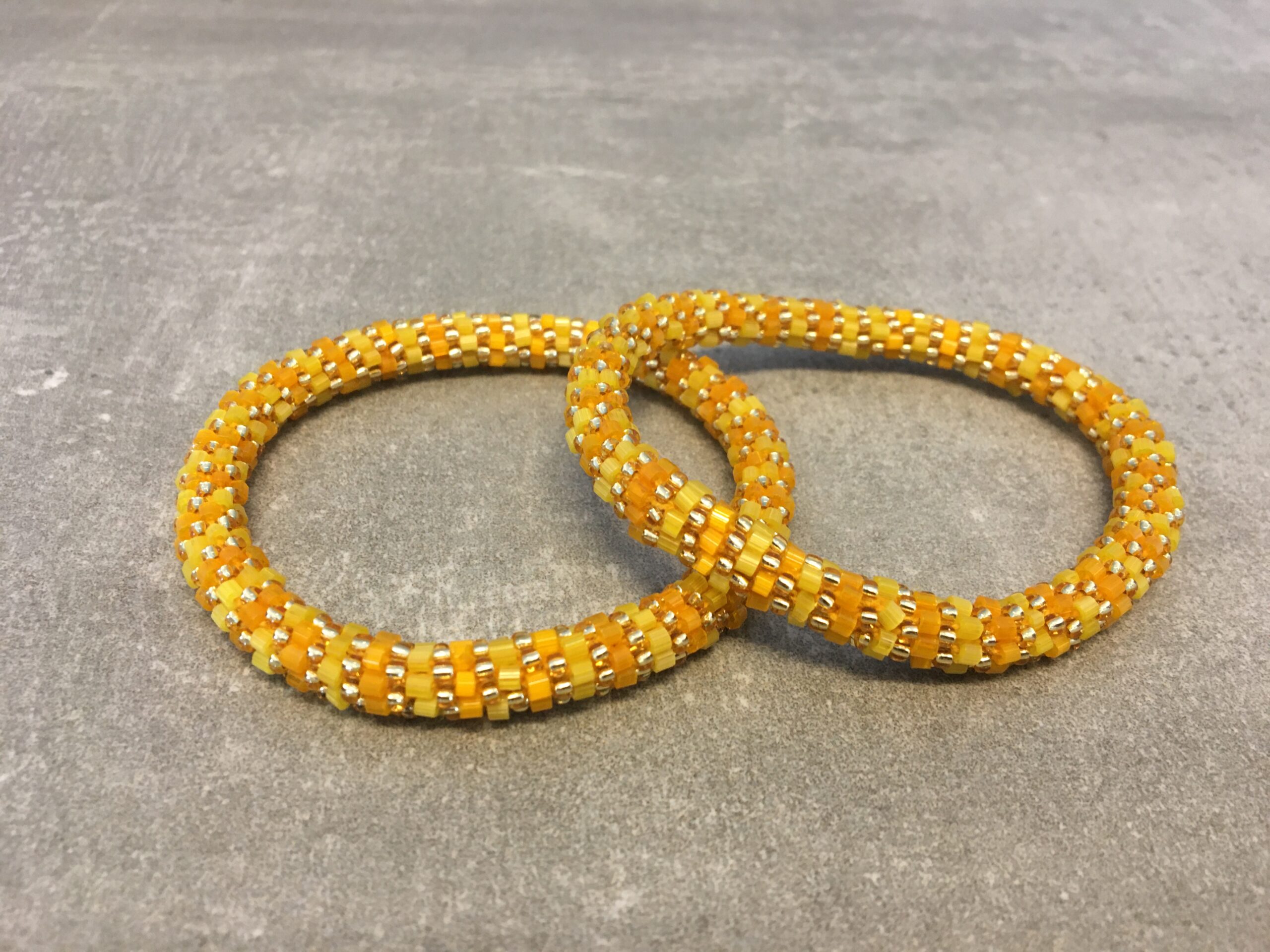 Kvindegrupper i Nepal, Kathmandu Valley, udstyres med glasperler og bomuldsgarn, så de i deres fritid kan håndknytte de smukke perlearmbånd. Hvert armbånd er et unikt resultat af kvindernes håndarbejde og varierer i farvekombinationer og mønstre. De er hæklet med en bomuldssnor. Syntes man at de lidt stramme, kan man vride forsigtigt i dem så de bliver større. syntes man derimod at de er blive lidt for løse, kan man ligge dem i vand. dette gør at bomuldssnoren trækker sig sammen og de bliver mindre igen.Unikke håndlavet nepal armbånd, som er knyttet perle for perle, af nepalesiske kvinder. Vi har mere end 200 forskellige, at vælge i mellem. Så du kan finde de helt rigtige roll on nepal perle armbånd.