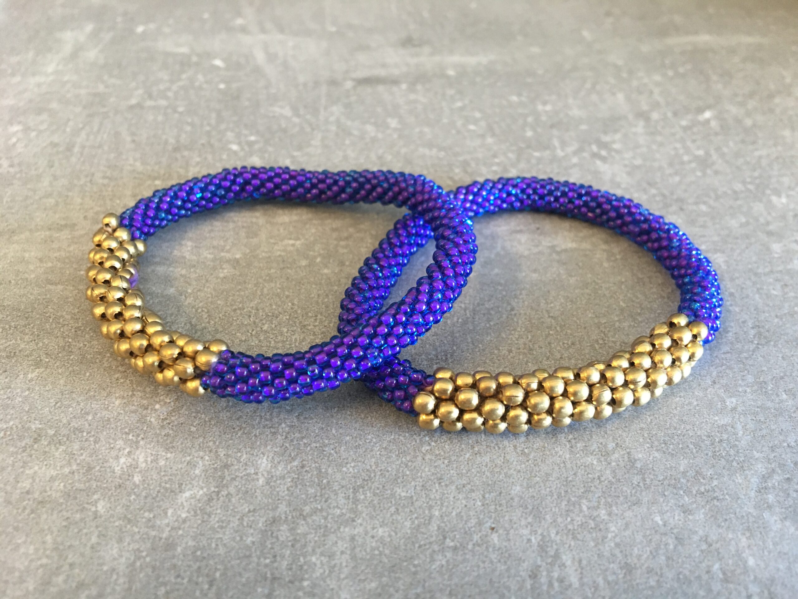 Roll-on perle armbånd er håndlavet i Nepal. De er lavet med forskellige glasperler og i forskellige mønster. De er hæklet med en bomuldssnor.