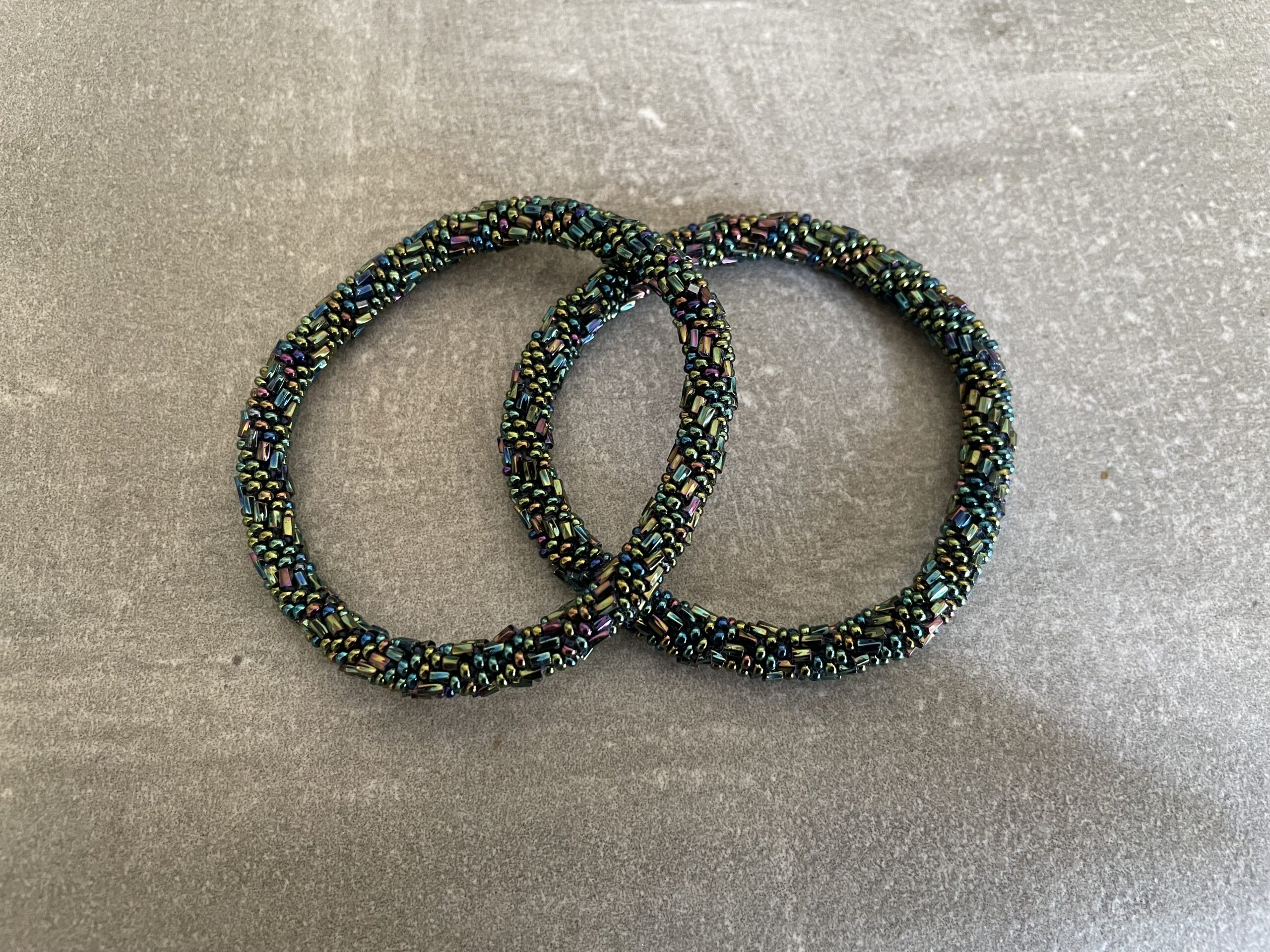 Kvindegrupper i Nepal, Kathmandu Valley, udstyres med glasperler og bomuldsgarn, så de i deres fritid kan håndknytte de smukke perlearmbånd. Hvert armbånd er et unikt resultat af kvindernes håndarbejde og varierer i farvekombinationer og mønstre. De er hæklet med en bomuldssnor. Syntes man at de lidt stramme, kan man vride forsigtigt i dem så de bliver større. syntes man derimod at de er blive lidt for løse, kan man ligge dem i vand. dette gør at bomuldssnoren trækker sig sammen og de bliver mindre igen. Unikke håndlavet nepal armbånd, som er knyttet perle for perle, af nepalesiske kvinder. Vi har mere end 300 forskellige, at vælge i mellem. Så du kan finde de helt rigtige roll on nepal perle armbånd.